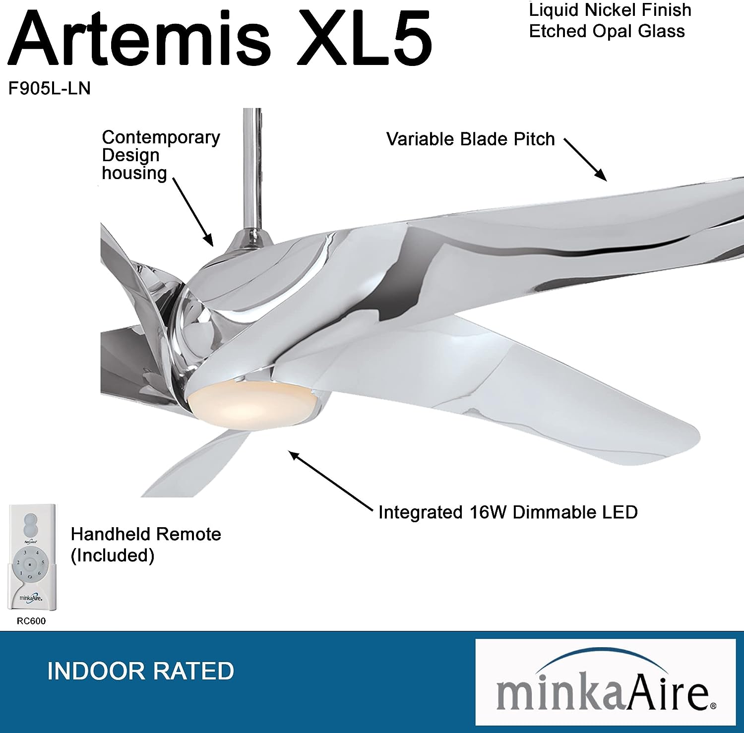 BULB: The Artemis XL5 ceiling fan includes an integrated 16 Watt Dimmable LED Light Module in Tinted Opal Glass